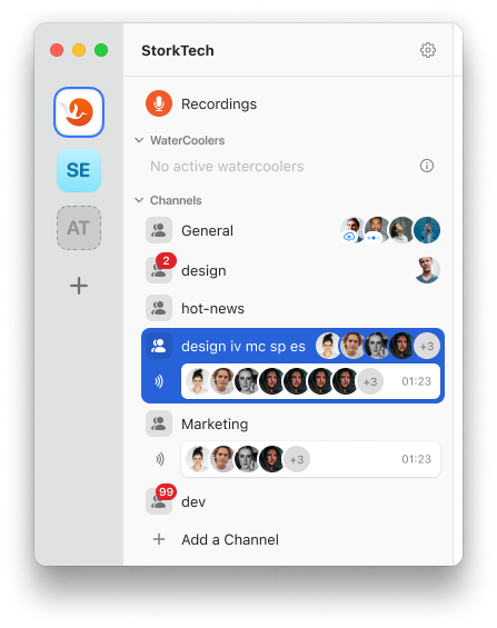 Absence of unexpected office encounters is a real problem for remote teams. Stork is the first and only business platform that solves that. Here is how: when two or more people are talking publicly in Stork - any other team member can join the conversation Clubhouse style thus creating serendipitous experience and encouraging spontaneous conversations.