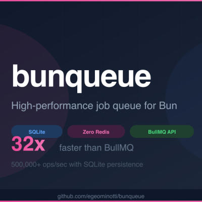 bunqueue ist eine Hochleistungs-Job-Warteschlange für Bun, die SQLite anstelle von Redis verwendet und ideal für KI-Agenten und Automatisierung ist.