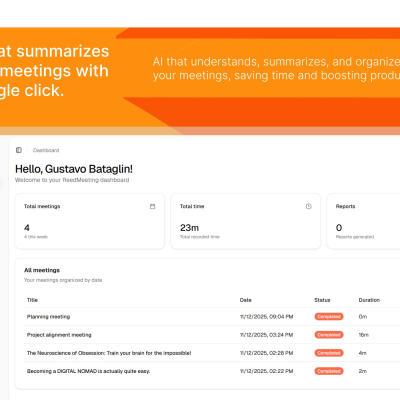 ReadMeeting ist ein innovatives Tool, das darauf abzielt, die Art und Weise, wie Ihr Team Meetings abhält, zu revolutionieren. Mit KI-gestützten Besprechungszusammenfassungen können Sie sicherstellen, dass alle auf dem gleichen Stand sind, was die Kommunikation und Zusammenarbeit verbessert.
