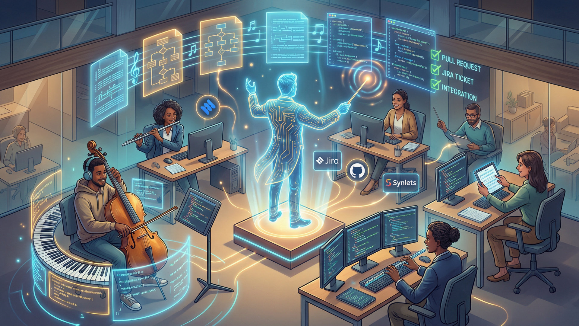 Synlets es una herramienta impulsada por inteligencia artificial desarrollada por Synlets que permite a los equipos de desarrollo de software automatizar el ciclo completo de desarrollo. Puede generar tickets a partir de descripciones en lenguaje natural, asignarlos a agentes de IA y gestionar solicitudes de incorporación y revisiones de código.