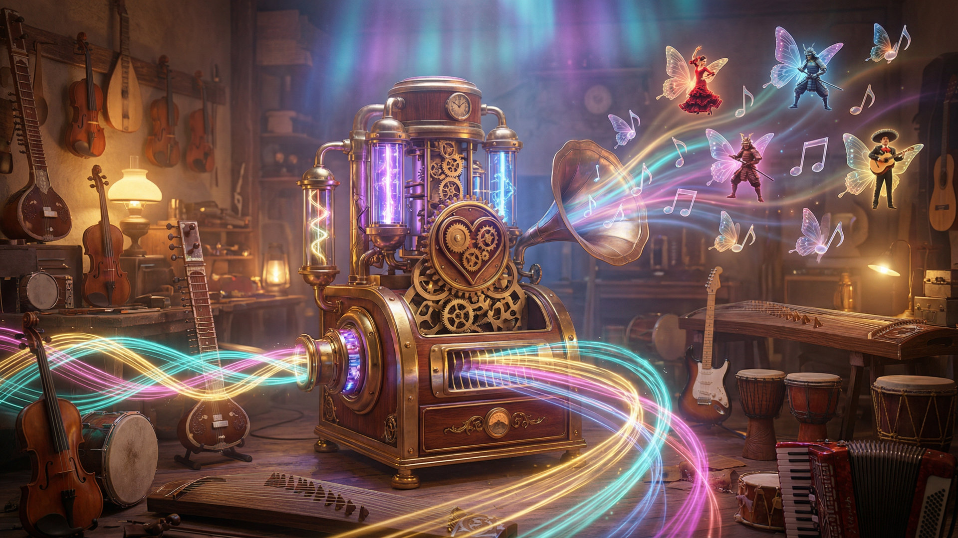 O Gerador de Música HeartMuLa AI oferece ferramentas para a criação extensa de música e controle sobre elementos musicais, como letras, tempo e gênero.