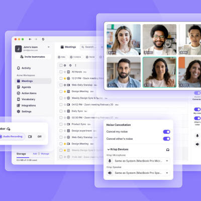 Krisp é o único Assistente de Reuniões com IA projetado para uma comunicação fluida. Com gravação integrada, transcrição e tecnologia de voz avançada, permite que você se concentre no que realmente importa durante suas reuniões, tudo isso sem a necessidade de bots.