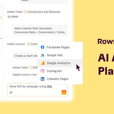 Com um conjunto de recursos poderosos, o Rows AI Analyst otimiza seus fluxos de trabalho de análise de dados. Descubra como ele pode transformar sua interação com os dados.